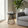Embrace minimalist urban design with this sleek, all-black accent table. Featuring a circular matte top supported by a dramatic, hourglass-shaped wire base, this piece creates a sense of light and space while offering sturdy functionality. Its versatile silhouette works beautifully as a cocktail table, a plant stand, or a stylish companion to a modern dining set.